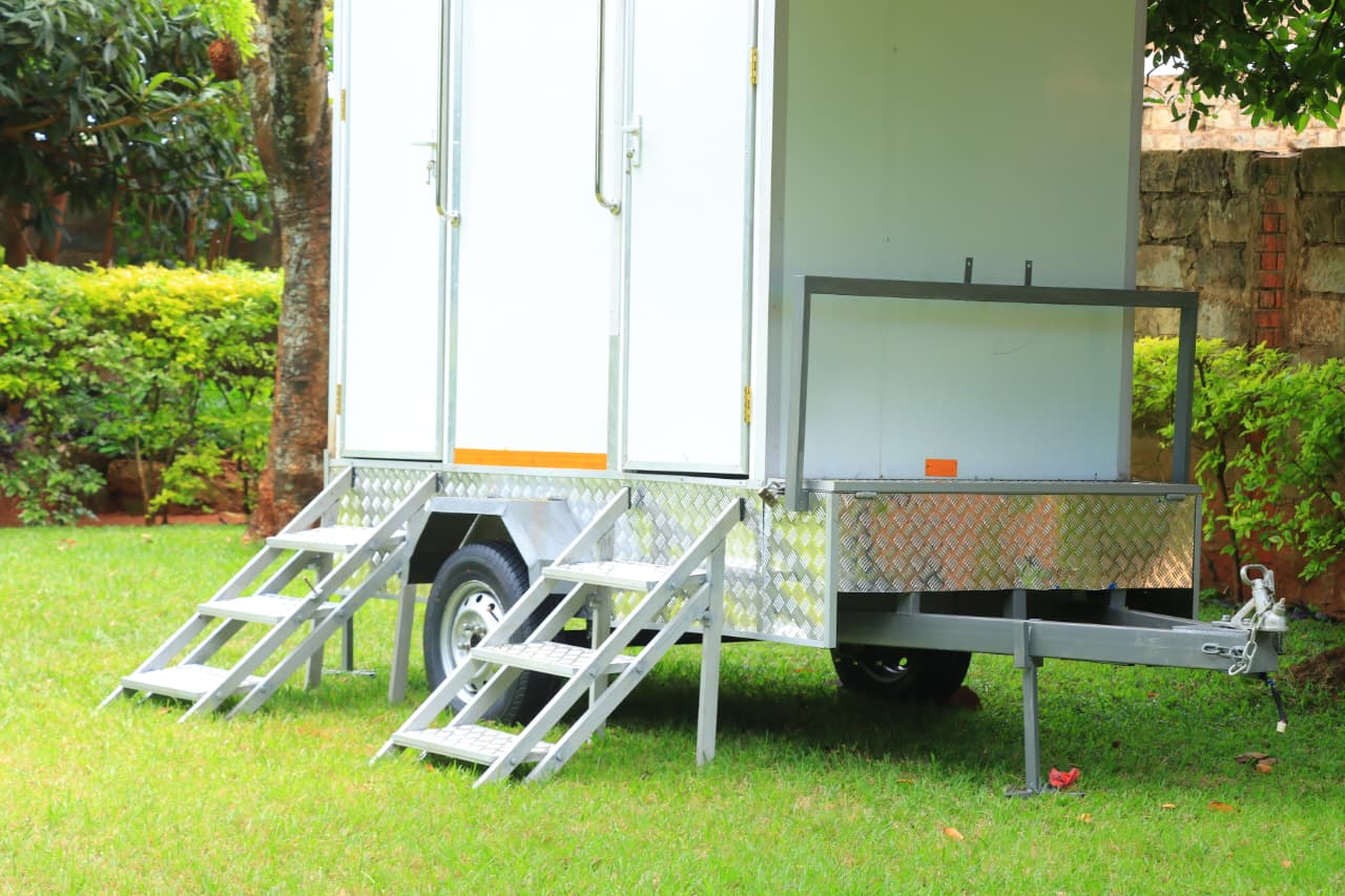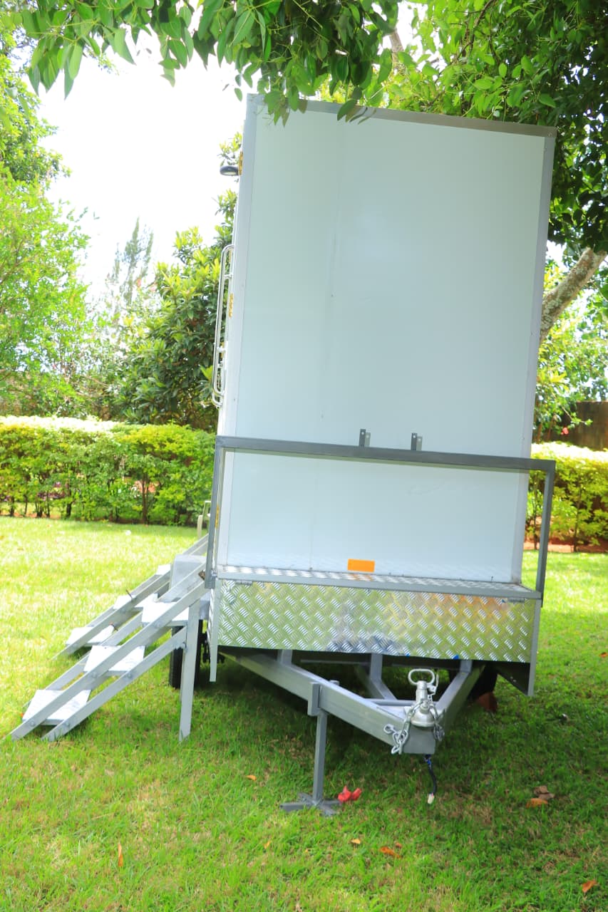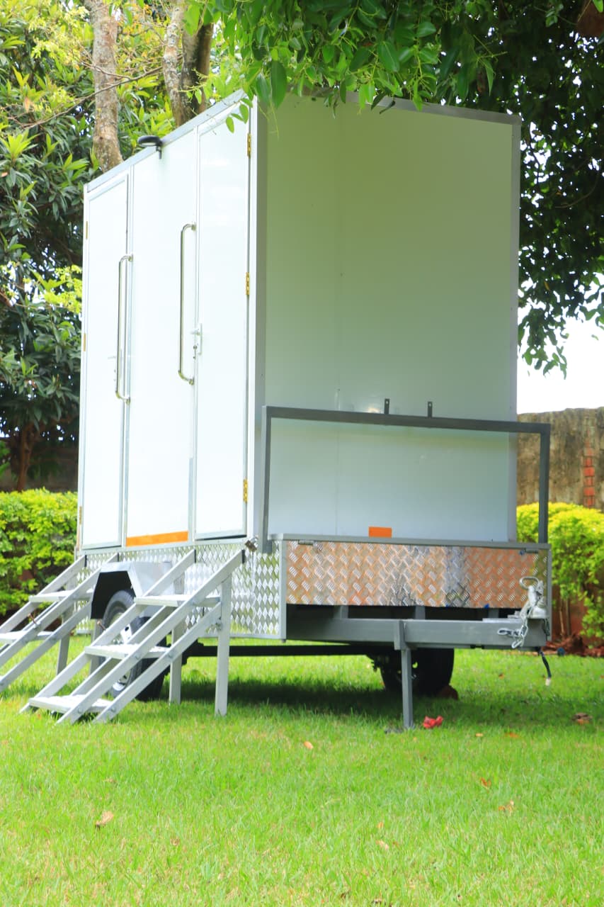 Built on a robust steel chassis and finished with elegant, weather-resistant sandwich panels, this trailer is perfect for VIP events, outdoor venues, weddings, and construction sites where comfort cannot be compromised. It is fully self-contained with its own solar power system, water supply, and waste storage, making it a ready-to-use solution for any location in Kenya.